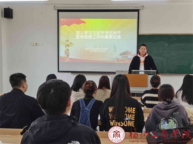 为深入学习贯彻习近平新时代中国特色社会主义思想,引领学生党员们树立正确的人生观和价值观,以理论创新引领宣传思想工作工作出现新的飞跃。11月18日下午,在线买世界杯平台学生第八党支部在E301组织召开深入学习习近平总书记关于宣传思想工作的重要论述专题会议。