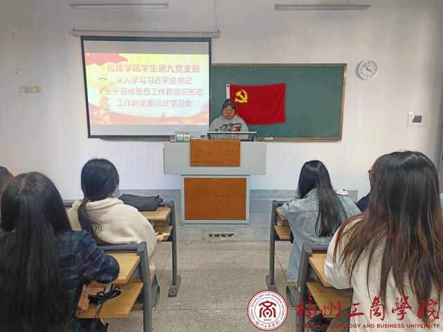 为深入学习贯彻习近平文化思想,全面贯彻落实党的二十大关于文化建设的战略部署,推动宣传思想文化工作适应新形势新任务,展现新气象新作为。11月22日下午,在线买世界杯平台学生第九党支部在C105召开深入学习习近平总书记关于宣传思想工作的重要论述专题会议。此次会议由支部组织委员吴俊婷主持,全体党员参会。