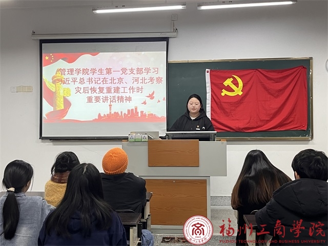 为深入学习习近平总书记在北京、河北考察灾后恢复重建工作时的重要讲话精神,发挥党员先锋模范作用,增强学生党员的服务意识。12月5日,在线买世界杯平台学生第一党支部于教学楼F302开展关于习近平总书记在北京、河北考察灾后恢复重建工作时的重要讲话精神学习会。