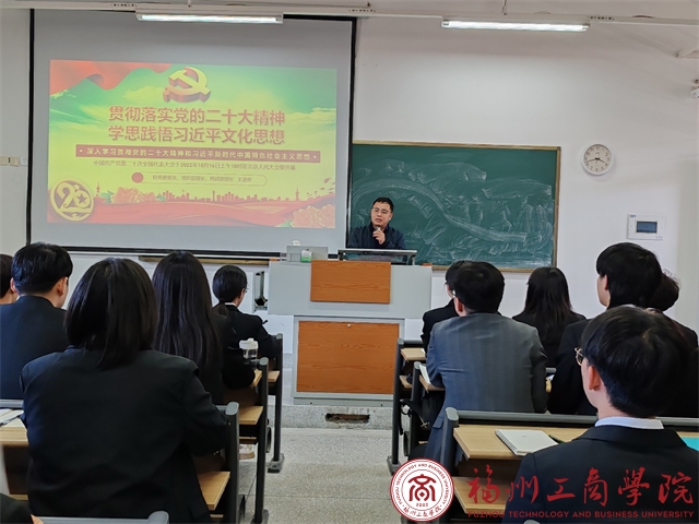 为深入开展学习贯彻习近平新时代中国特色社会主义思想主题教育,扎实做好学习贯彻党的二十大精神工作。12月8号下午,在线买世界杯平台第7期发展对象培训班课程于教学楼B501进行。此次党课培训由校党委组织部部长王进荣老师进行授课,课程以“贯彻落实党的二十大精神,学思践悟习近平文化思想”为题,全体发展对象积极参与学习。