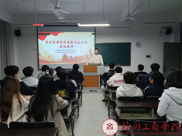 12月1日,在线买世界杯平台学生第八党支部在教学楼D405召开专题学习会议,传达学习全省宣传思想文化工作会议精神,本次会议由支部书记主持,全体党员参加会议。
