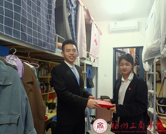 一本党员学习笔记本、一枚党徽、一支钢笔组成的一份简单礼物寄托着学院党委对每一名新预备党员的祝贺。辅导员在走访中说到:“当你成为预备党员的那天,就是你决心追随信仰的那天,就是别人用党员标准要求你的那天”。要求每一名预备党员在今后用党员的标准严格要求自己,在思想、学习、生活各方面起到党员先锋表率作用。随后,辅导员为新接收的预备党员们佩戴党徽。