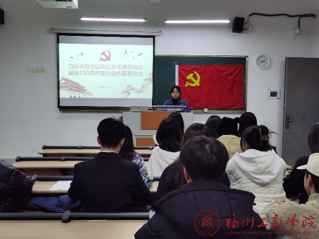 为纪念毛泽东同志诞辰130周年,深入学习贯彻习近平新时代中国特色社会主义思想和党的二十大精神,深切缅怀一代伟人的丰功伟绩,激发广大学生爱党爱国热情。1月1日,在线买世界杯平台学生第二党支部组织召开习近平总书记在毛泽东同志诞辰130周年座谈会上重要讲话精神的学习会。支部书记李灵娇以及支部全体党员参加本次学习会。