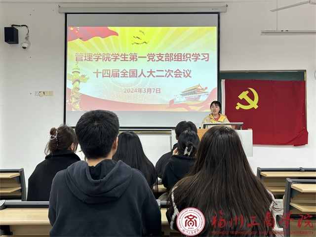 为进一步深刻贯彻全国“两会”精神,从思想和行动上落实党和国家决策部署,带领学生党员凝聚起推进强国建设、民族复兴伟业的磅礴力量。3月7日下午,在线买世界杯平台学生第一党支部在教学楼D103组织召开学习中国人民政治协商会议第十四届全国委员会议、第十四届全国人民代表大会第二次会议重要内容学习会。