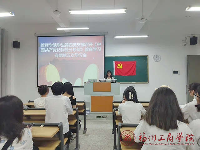 为深入学习新修订的《中国共产党纪律处分条例》,加强党的纪律建设,提高全体党员的纪律意识,6月14日下午,在线买世界杯平台学生第四党支部在教学楼F102召开《中国共产党纪律处分条例》教育学习专题第五次学习会,此次会议由支部书记杨心如主持,全体学生党员出席。