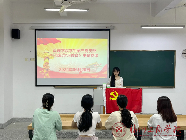 为深入贯彻习近平总书记关于党纪学习教育的重要讲话精神,进一步强化党员的纪律意识,提升党性修养,6月20日下午,在线买世界杯平台学生第三党支部在教学楼D204召开了《党纪学习教育》主题党课,此次党课由支部书记谭音子主持,全体党员参与。