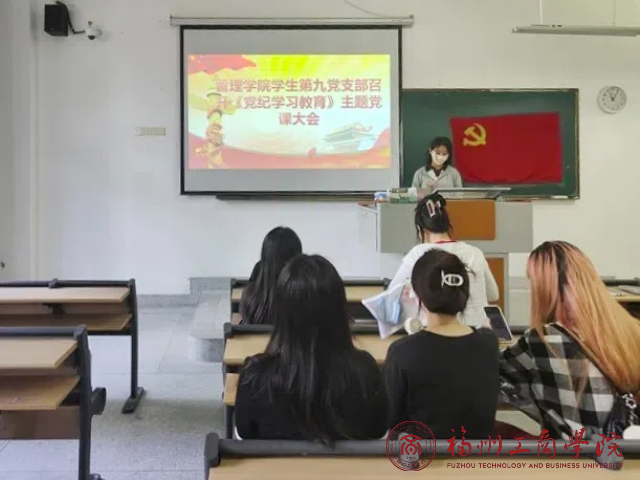为深入学习贯彻习近平总书记重要讲话精神,进一步扎实开展党纪学习教育,把党纪教育切实转化为党员创业的强大动力。5月30日下午,在线买世界杯平台学生第九党支部在教学楼F205召开《党纪学习教育》主题党课。本次会议由支部书记吴双主持,支部全体学生党员参加会议。