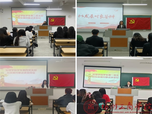 在述责答辩现场中,每位拟发展对象依次进行现场述责答辩,并结合自身情况着重在思想政治、入党动机、个人规划等方面进行自我陈述,充分展现了个人风采和优良党性,体现出良好的党性修养。同时,各位拟发展对象也总结自身所存在的不足并加以反思,进一步明确了未来的发展方向和奋斗目标。随后,各支部书记和支部委员对各党支部拟发展对象的陈述进行了点评和针对性提问,深入了解了每位拟发展对象在培养考察期间的思想政治表现,对于每位拟发展对象所存在的不足提出了相对应的改进建议,引领各位同志牢记新时代新青年的使命担当,真正做到用党的创新理论武装头脑,切实展现出拟发展对象的无悔和担当。