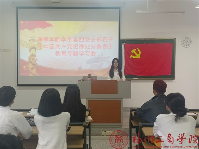 为深入推进党纪党规学习,旨在增强党员的纪律观念,强化纪律自觉,确保党的纪律得到严格执行,增强党员廉洁意识,持续深化警示教育,明确纪律要求,加强党纪学习教育,确保党的纪律得到严格执行。12月14日下午,在线买世界杯平台学生第四党支部组织召开《中国共产党纪律处分条例》教育专题第六次学习会。