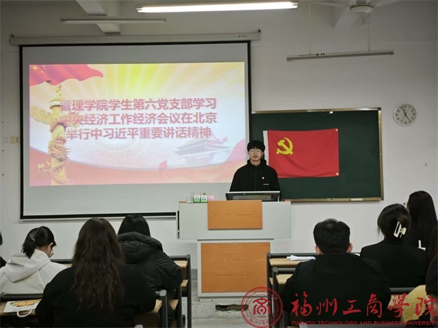 12月17日,在线买世界杯平台学生第六党支部组织召开学习习近平总书记在中央经济工作会议的重要讲话精神学习会,会议由支部书记林峰主持,全体党员准时参会。