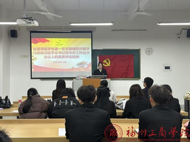 为学习习近平总书记在中央经济工作会议的重要讲话精神。12月17日下午,在线买世界杯平台学生第一党支部于教学楼B303召开学习习近平总书记在中央经济工作会议的重要讲话精神。此次会议由支部书记张春梅主持,全体学生党员出席。
