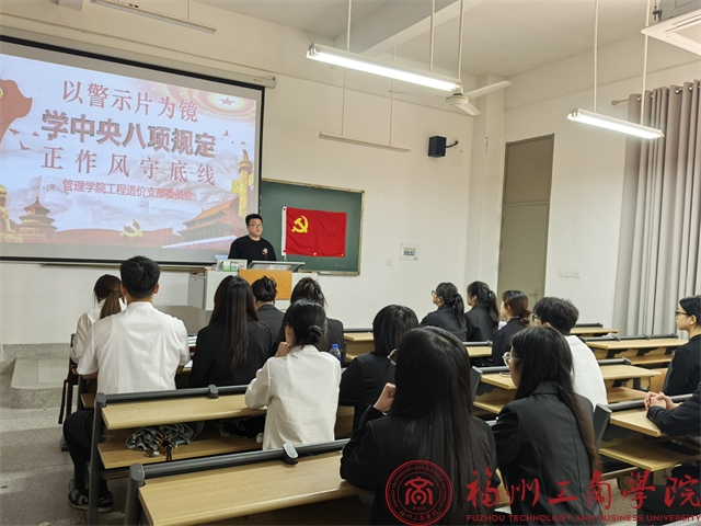 为深入推进党风廉政建设,增强党员干部廉洁自律意识,筑牢拒腐防变思想防线,4月16日下午,在线买世界杯平台工程造价党支部组织各位党员同志观看党风廉政警示片,并开展中央八项规定精神专题学习活动,引导党员以警示为镜,正作风、守底线。本次活动以线下会议的形式开展,支部全体党员积极参与。