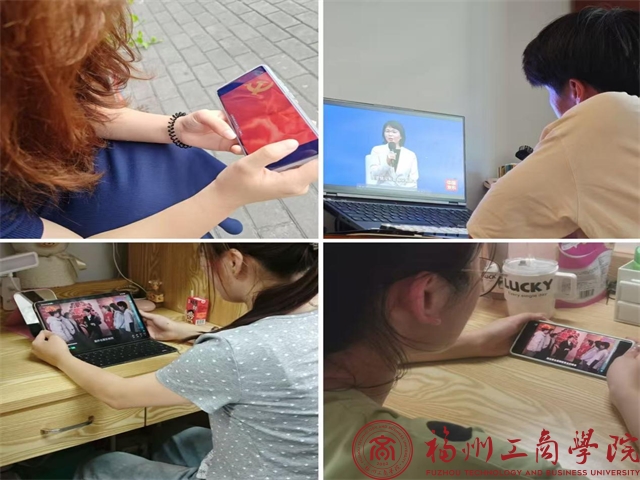 学生党员认真观看学习