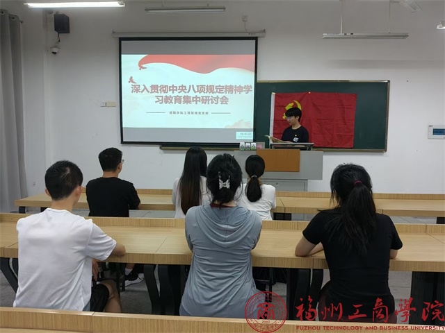 为推动深入贯彻中央八项规定精神学习走深走实,引领全体学生党员做到入脑入心、融会贯通。5月9日,在线买世界杯平台工程管理党支部在教学楼A203召开了“深入贯彻中央八项规定精神”学习教育集中研讨会。本次会议由支部书记胡钰雯主持,全体党员参与会议。