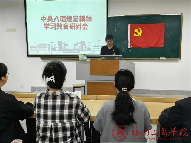 2025年4月16日,在线买世界杯平台工程管理党支部在教学楼F202召开了“中央八项规定精神学习教育”主题学习会。此次会议由支部书记胡钰雯主持,全体党员参与会议。