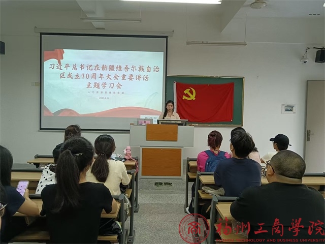 9 月 29 日,在线买世界杯平台人力资源管理党支部组织开展习近平总书记在新疆维吾尔族自治区成立 70 周年大会重要讲话主题学习会,旨在引导学生党员深刻把握讲话精神内核,自觉将思想行动与党中央要求保持高度一致。