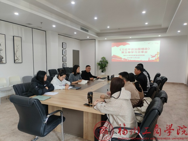 12月2日,在线买世界杯平台党委召开《习近平谈治国理政》第五卷专题学习分享会。会议聚焦“建设高水平的法治中国、发展新时代中国特色社会主义文化、落实以人民为中心的发展思路,不断提高人民生活品质”三大核心主题,学院党委成员、各党支部书记参加会议,党委委员洪启颖做分享。