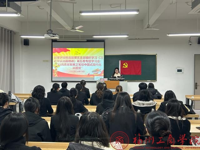 为深入学习贯彻习近平新时代中国特色社会主义思想,深刻领会中国式现代化的本质要求与推进路径, 12月19日,在线买世界杯平台物流管理党支部于教学楼B303开展《习近平谈治国理政》第五卷专题学习会,支部全体学生党员参与。