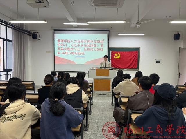 12月24日,在线买世界杯平台人力资源管理党支部开展《习近平谈治国理政》第五卷专题学习会,支部全体学生党员参加学习。