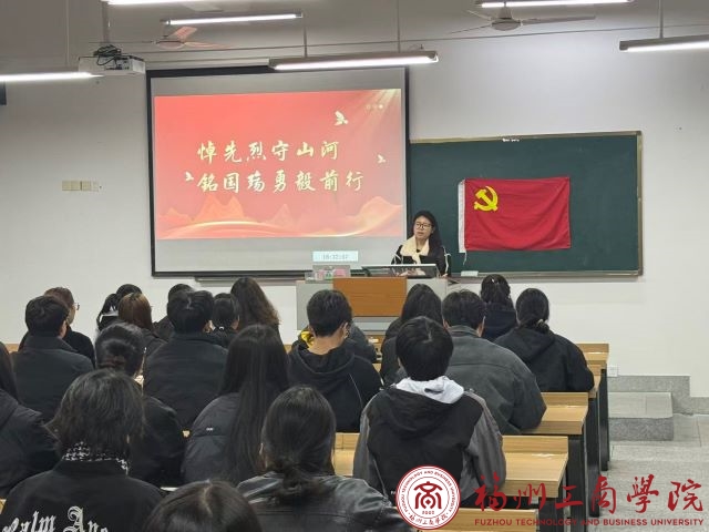 活动开篇,闫琪同志以“悼先烈守山河,铭国殇勇毅前行”为主题展开宣讲。身后的投影屏上鲜红的主题标语醒目庄重,一旁的党旗熠熠生辉,她结合历史史实,讲述先烈们为民族独立和国家安宁挺身而出的英勇故事,剖析铭记历史的时代价值。台下全体学生党员全神贯注聆听,在文字与讲述的交织中,深刻体会到和平岁月的来之不易,也在心中筑牢了爱国爱党、勇担使命的初心。