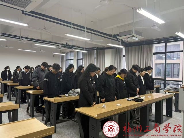 进入下一环节,全体学生党员起立肃立,低头默哀。教室里瞬间安静下来,大家以静默的方式,向在历史中遇难的同胞致哀,向为国家和民族牺牲的革命先烈致敬。挺直的身躯、低垂的头颅,定格的不仅是片刻的肃穆,更是对历史的敬畏、对先烈的缅怀,这份情感也让在场每个人的爱国情怀愈发浓烈。