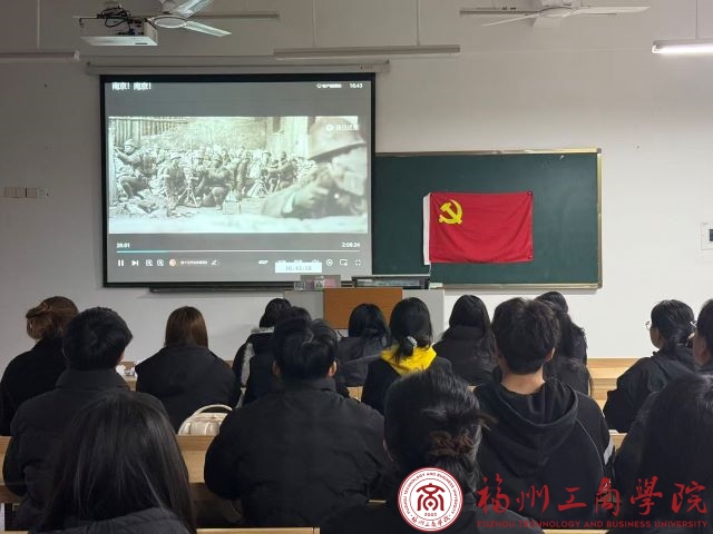 默哀仪式结束,支部全体学生党员观看历史题材影片《南京!南京!》。投影屏上,黑白的历史影像重现了那段刻骨铭心的苦难岁月,日军侵华的残酷画面、同胞们的挣扎与抗争,深深触动着每一位观影者的内心。大家凝视着屏幕,在光影中重温民族过往的伤痛,更深刻理解了“落后就要挨打”的道理,也坚定了传承先烈精神、以实干守护山河的决心。