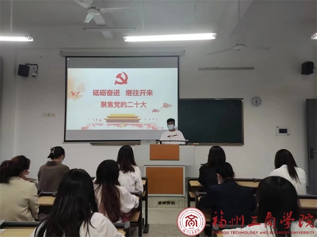 会议上,学生党员代表陈仁辉围绕“砥砺奋进、继往开来,聚焦党的二十大”为主题,展开对党的二十大精神重点内容的详细回顾,同时向各学生党员阐述了我校对学习党的二十大精神高度重视与充分实践。随后,各学生党员积极分享自己学习党的二十大报告的心得体会,并表示要全力做领会精神的先行者,用实际行动将党的二十大精神融入到自身的学习生活中,蹲厉奋发、勇毅前行。