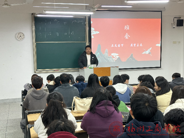 1月8日下午,23工商管理专升本专业4班召开了2024年的第一场班会。班会主题是立足当下,展望未来。