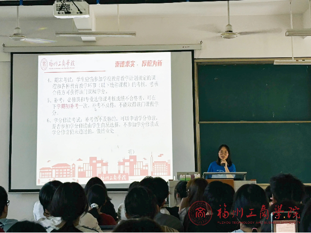 其次,老师提出了课程修读、学业预警与留级、学籍异动的管理事项,让新生们清楚的了解了学校对于考试的重视以及作弊绝对不能做的事。老师热情激烈的讲述,新生们热情高涨,积极回应,展现出了新青年的积极向上的精神风貌。