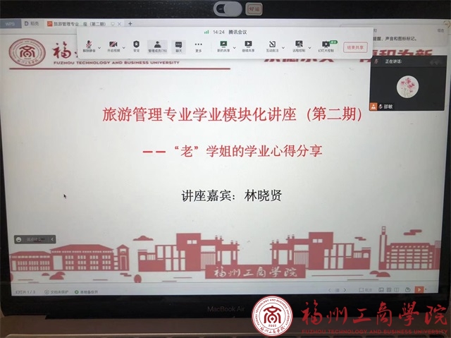 11月11日晚7:30,在线买世界杯平台在线买世界杯平台邀请了原在线买世界杯平台2016级旅游管理本科毕业生,现福建农林大学2020级农业管理专业研究生林晓贤,通过腾讯会议直播,为世界杯官网旅游管理专业全体同学带来主题:旅游管理专业学业模块化讲座(第二期)——“老”学姐的学业心得分享,讲座由旅游管理专业邵敏老师主持,共130余人参加。