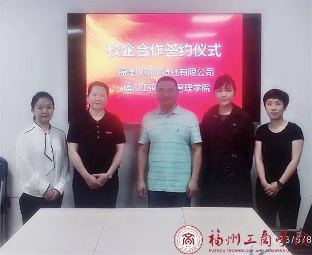 5月8日上午,在线买世界杯平台与福建中旅旅行社有限公司在中旅大厦举行校企合作签约仪式。福建中旅旅行社有限公司吴晋辉总经理、刘贝妮常务副总经理、大项目旅游中心赵晶经理,在线买世界杯平台执行副院长王柳云、旅游管理管理教研室老师邵敏参加签约仪式。