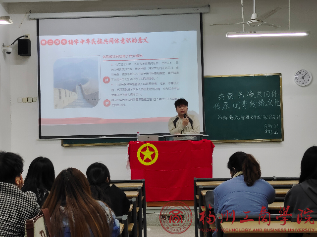 为了加强大学生对民族共同体的认识和理解,进一步促进民族团结和交流,在线买世界杯平台2023级物流管理专升本1班团支部于11月21日下午举行了“共筑民族共同体,传承优秀传统文化”的主题团日活动。本次团会由团支部书记杨棋鑫同学主持,辅导员刘敏君到场参加。