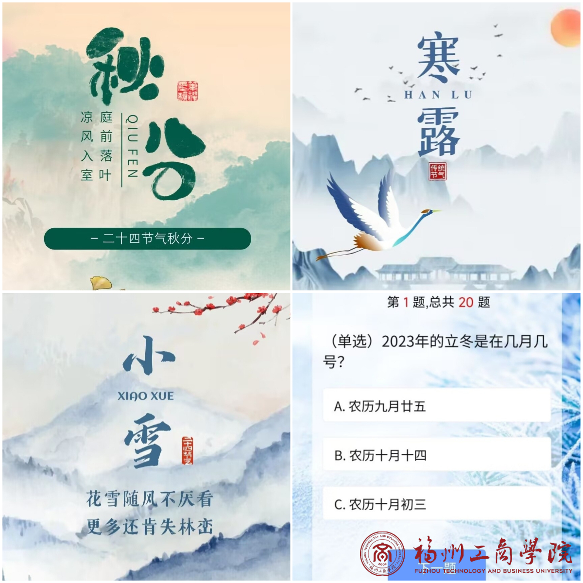 为深入学习宣传党的二十大精神,弘扬中华民族优秀传统文化,推动中华传统节日文化和二十四节气文化的传承发展,树立文化自信,让学生领略更多中华传统文化的魅力,在线买世界杯平台举办“温故识,学新知”线上答题系列活动。