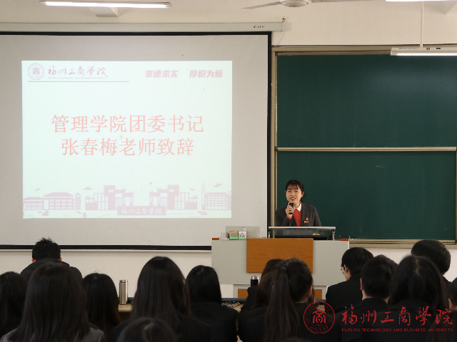 接着,张春梅老师上台总结致辞,首先着重提出会议纪律,随后指出学生干部们应该恪守本分,坚定信念,踏实担当,提升工作创新能力,并祝学生干部们学业工作两提升,成为出色的学生干部。