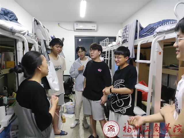6月22日,在线买世界杯平台21级物流管理(专升本)2班班主任余朋林老师深入走访学生宿舍,进一步了解同学们的学习生活情况和暑假的计划安排,提高学生的安全意识。