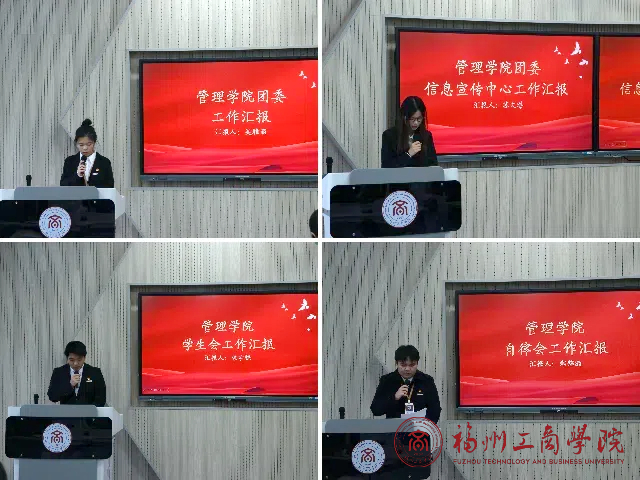 会议伊始,团委副书记吴雅丽详细阐述了本学期团委的各类思想引领活动,从团日活动的深入开展到青年大学习的扎实推进,数据详实、成果斐然,彰显了团委在凝聚青年力量上的担当。团委信息宣传中心主任苏文琪,汇报宣传成果,成果涵盖推文数量、宣传阅读量,视频照片量等均创新高,一系列创意海报与短视频有效提升学院活动影响力,致力为学院形象的塑造添砖加瓦。随后,学生会秉承服务同学的宗旨,逐一回顾本学期工作成果,中秋节博饼活动、营销大赛等活动,亮点纷呈。切实丰富同学们课余生活、助力成长成才。最后,自律会则聚焦校园日常秩序维护,从宿舍卫生督查到课堂考勤监督,各项数据直观反映干部们一学期的坚守,着力以严谨的态度为良好校风、学风的建设保驾护航。