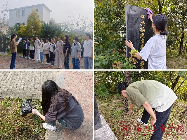 活动伊始,团员们先对纪念碑进行擦拭,而后清理了周遭的杂草、并整理了绿化带。随后,团支书郭诗如同学为大家介绍了中国革命的光辉历程,让大家感受到了革命先辈的崇高精神和坚定信念。最后,在纪念碑前,全体团员举起右拳,重温入团誓词,誓言铿锵有力,表达了青年学子为实现中华民族伟大复兴而不懈奋斗的决心。