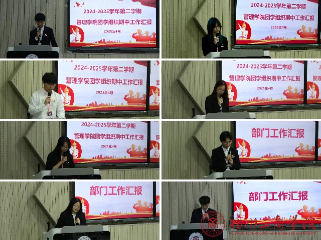会议伊始,各部门负责人依次上台,对各自部门上半学期的工作进行详细汇报。他们从各个方面,分享工作中的亮点与不足,并提出改进建议,充分展现团学组织各部门在过去一段时间内的辛勤付出和显著成果。接着,吴雅丽同学与干部们一同学习《学生手册》的相关内容,强调遵守校规校纪的重要性,指出全体团学组织干部应身先士卒,时刻保持良好的学风和行为习惯。最后,张春梅老师对会议进行总结,指出学生干部是连接学生与学院、引领学生成长的重要角色,对于培养学生的综合素质和领导能力具有重要作用。同时,鼓励大家要继续保持积极向上的工作态度,不断创新工作方法,为学院的发展贡献更多力量。