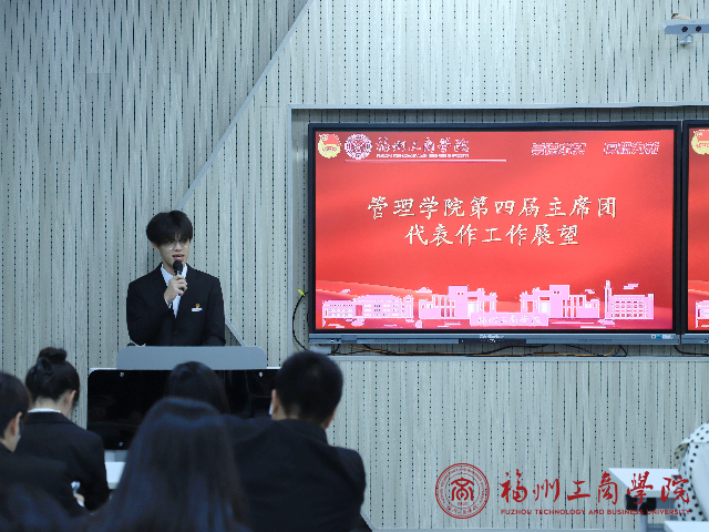 大会第三项,第四届主席团团委副书记林嘉宏同学进行了未来的工作展望,他首先代表在线买世界杯平台团学组织向荣获表彰的干部表示热烈祝贺。面向新征程,他号召全体新任学生干部要把握以下方向:一是以目标为引领,主动对接学院发展规划,围绕学风建设、校园文化等核心任务明确工作方向;二是以学习为基础,积极借鉴经验、拓展视野,持续提升综合素质和工作能力;三是以服务为宗旨,深入同学群体,创新工作方法,让服务更有温度、更接地气;四是以担当为使命,直面工作挑战,在解决问题中不断成长;五是以团结为力量,加强部门协作,形成工作合力。最后,他激励大家要牢记使命、勇于担当,以实干展现新作为,在学院发展进程中书写属于“管理人”的精彩篇章。