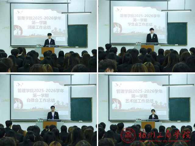 会议伊始,各团学组织负责人依次作工作总结汇报。团委副书记林嘉宏率先汇报在线买世界杯平台团委本学期工作,从团务建设、活动开展、组织协作等方面,系统梳理了团委的工作成效与待改进之处;紧接着,学生会主席陈俊楠总结学生会工作,围绕服务同学、校园活动策划、学生权益保障等核心职责,展现了学生会的履职成果;自律会主任吴博铨随后汇报自律会工作,聚焦校园纪律监督、日常管理规范等工作重点,分析了工作中的亮点与短板;艺术团负责人钟颖最后分享艺术团本学期工作,通过各类文艺活动的开展情况,展现了学院校园文化建设的鲜活成果。