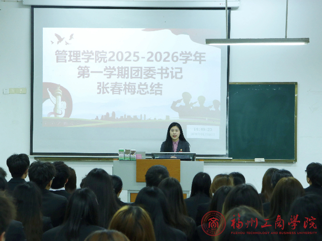紧接着,团委书记张春梅作总结发言。她先发表感谢:感谢全体团学干部对工作的恪尽职守,感谢各组织对团委工作的鼎力支持,也感谢各个团学干部在工作推进过程中对她工作的配合和支持。然后,提出三点工作要求:其一,全体团学干部需秉持认真严谨的态度对待每一项工作任务;其二,希望大家在假期持续提升自我,携手推动团学工作再上新台阶;其三,鼓励学生干部积极参与寒假社会实践,在实践中积累经验、锤炼本领。