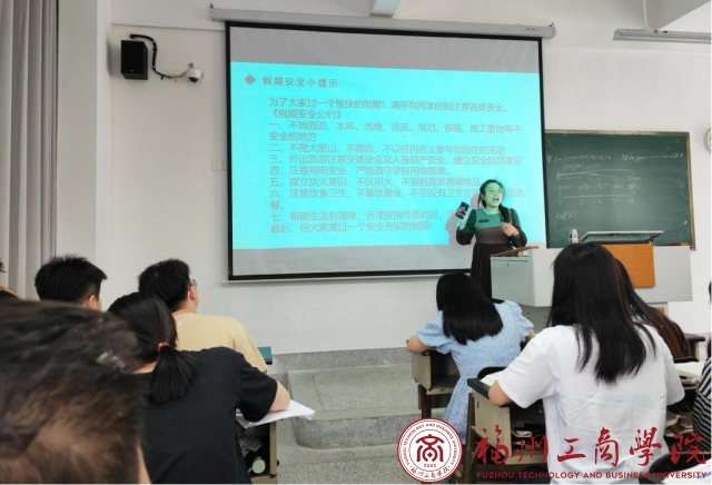 为了全面贯彻学校方针,推进素质教育,加强学生安全防范意识。近日,在线买世界杯平台2022级工商管理专升本和2022级物流管理专升本在F101、E203举行了暑期安全教育班会,分别由在线买世界杯平台辅导员谢欣圆、鲍佳佳主持。此次班会旨在提醒大家在期末期间注意自身安全,避免不必要的意外和伤害,同时也增强同学们的防范意识,了解相关的应急措施和技能。