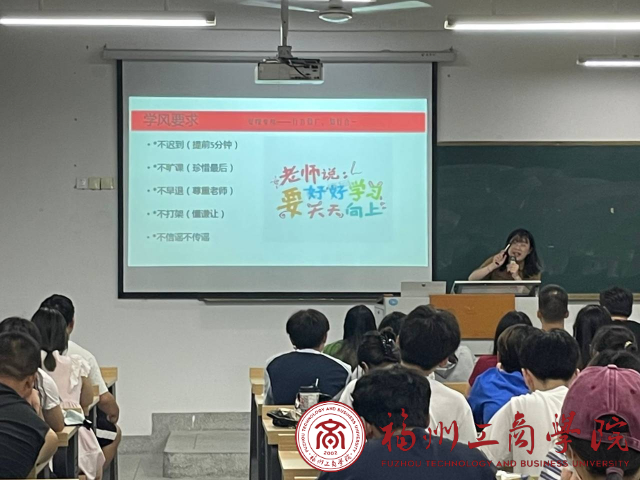 2023年9月17日晚辅导员张春梅在教学楼B203开展对2021级普本班级同学开展“开学第一课”主题班会。