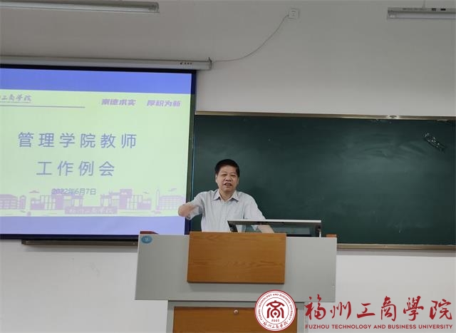 接着王柳云副院长解读了福建省教育厅《关于普通本科高校学科专业结构调整优化的指导意见》,指导意见的要求是以服务国家战略和经济社会发展为导向,以提高人才培养质量为目的。王副院长结合指导意见和学校学科发展的情况,提出每个专业未来的发展方向和特色,重点结合学生参赛培养学生的专业技能和双师型教师的培养工作问题。同时要求做好评估材料的完善工作。评估材料要重视七大观测点,共有三十多个项目,需要分配给相关的老师负责,希望负责的老师能够及时高效地完成学院分配的任务。