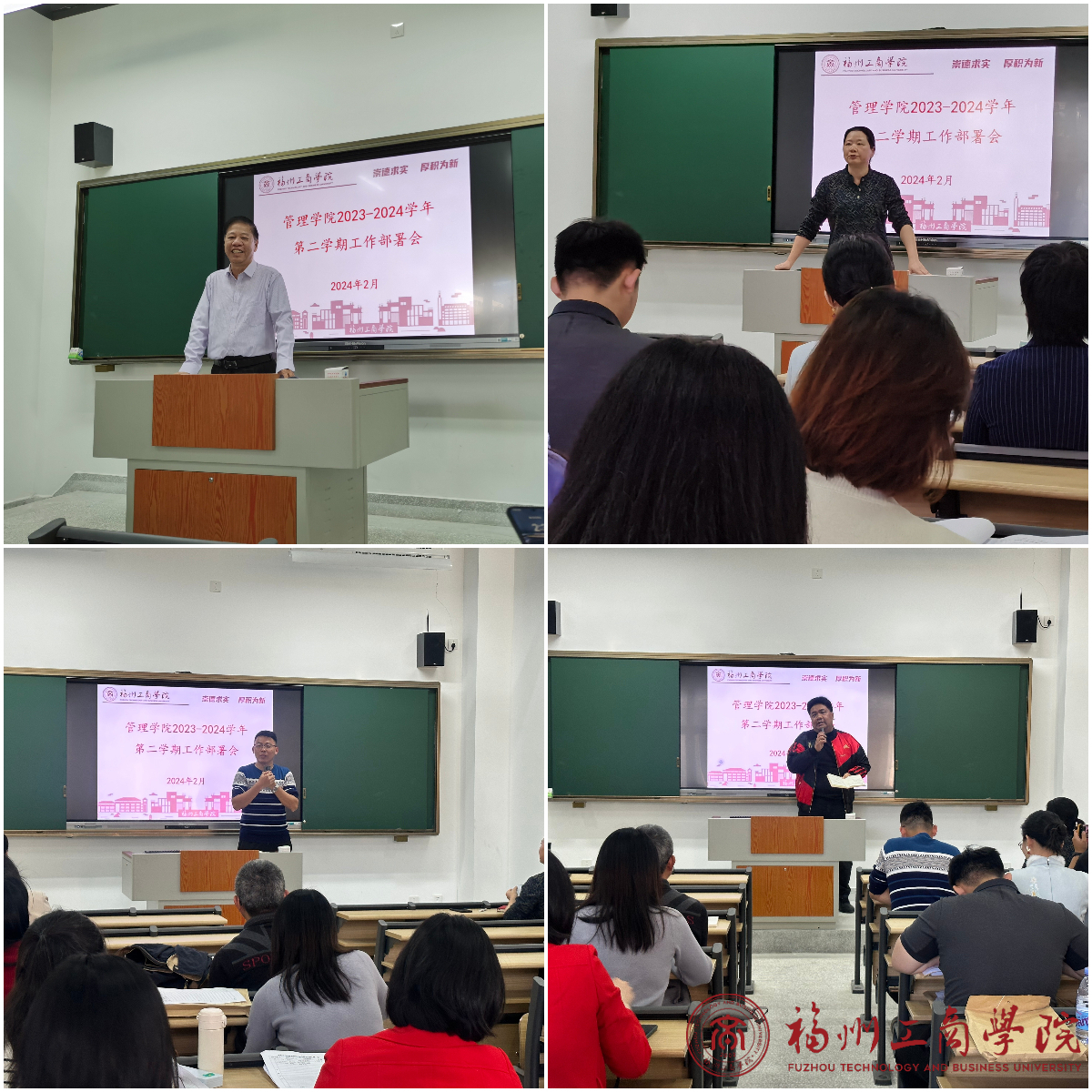 会中,学院领导对本学期教学、科研、社会服务等主要工作内容进行了部署,具体包括教学工作、学院建设、评建整改工作、工作坊建设,特色教育活动的推进,以及校企合作、学院发展、人才队伍建设等多个方面的任务。强调全体教职工要以充沛的热情和认真的工作态度,以不扬鞭自奋蹄的精神共同推动学院发展。郑杰书记围绕师德师风、班主任工作、就业工作、党建工作等方面事项进行了布置及要求,号召全体教职工齐心协力,共同应对新学期的挑战。此外,院长助理陈焱补充介绍了学院办公环境及新学期考勤制度情况,特别提醒各教职工要密切关注学校及学院发布的相关通知及工作要求,以主人翁的态度共同协助完成学院各项事务。