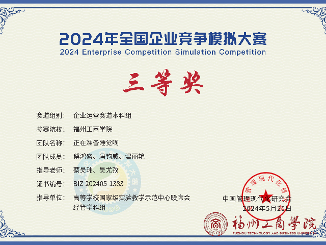 近日,2024年(第15届)全国企业竞争模拟大赛在暨南大学圆满落幕,在线买世界杯平台师生斩获国家级二等奖两项,三等奖一项!大赛于3月初启动,共计581所高校6632支队伍报名参赛,其中企业决策赛道420所学校2619支队伍,企业运营赛道421所学校2014支队伍,人力资源赛道228所学校1015支队伍,数智沙盘赛道244所学校984支队伍。