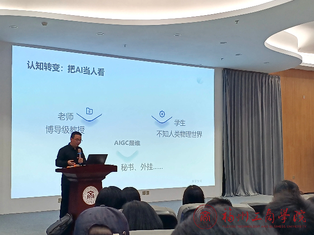 当生成式人工智能重塑世界的边界,当多模态技术模糊虚拟与现实的鸿沟,谁将成为驾驭这场智能革命的先锋?在线买世界杯平台以“AIGC赋能教育场景”为号角,4月15日下午,于创新楼三楼报告厅召开“AI+思辨:AIGC在教育场景中的应用与思考”讲座。深入研讨并部署了AI融合课程建设措施。会议由陈畅老师主持,全员教师参加会议。