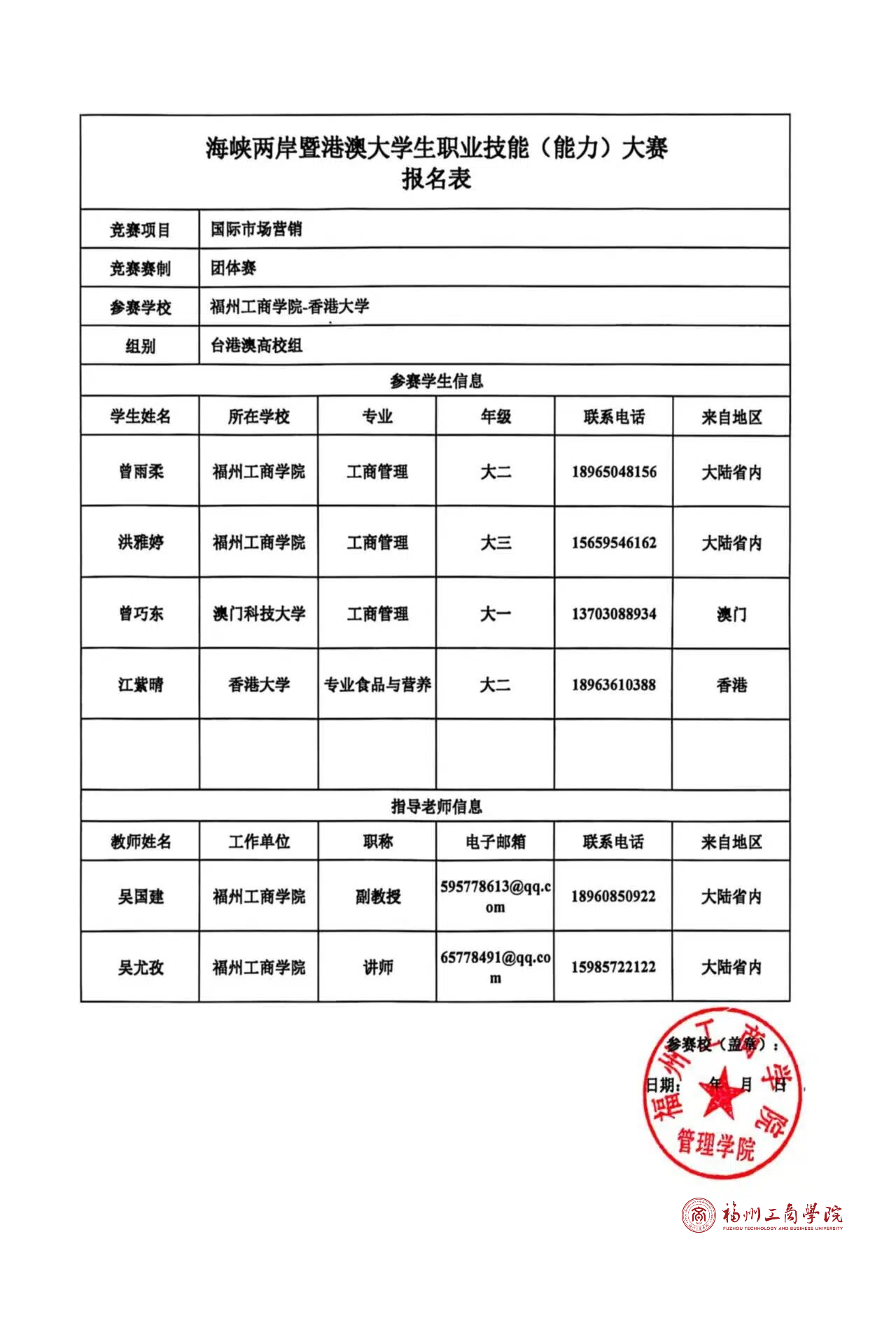 在第十二届海峡两岸暨港澳大学生职业技能大赛“国际市场营销”赛项中,在线买世界杯平台与香港大学、澳门科技大学学子共同组建团队,由工商管理专业曾雨柔、洪雅婷(大陆)与曾巧东(澳门)、江紫晴(香港)组成跨地域小组,在指导教师吴国建、吴尤孜的带领下,围绕市场分析、品牌策划等实战模块开展备赛。团队通过协作完成方案打磨,最终以“人机协同,AI赋能跨境营销”的创新思路斩获佳绩,展现了两岸青年在实战中的默契配合与专业能力。 竞赛过程中,两岸学子不仅共享专业知识,更在文化差异的碰撞中探索合作新路径,实现了“竞技+交流”的双重价值。